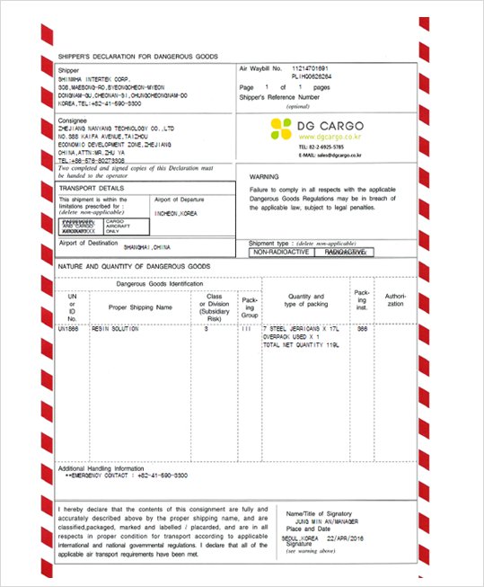 위험물신고서(DGD)를 통해 모든 정보를 정확하게 항공사에 신고해야 합니다.